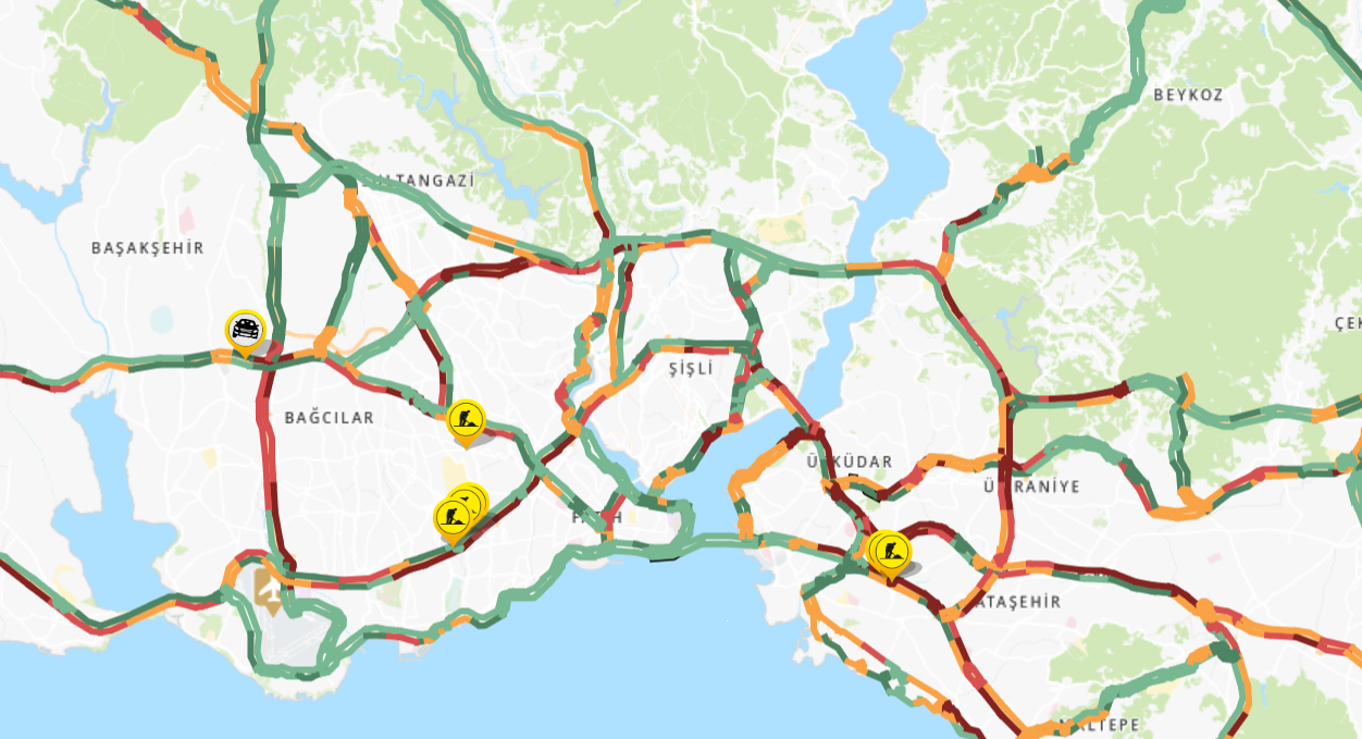 İstanbul Büyükşehir Belediyesi haritasında mesai saatinin başlamasına dakikalar kala bile trafik yoğunluğu yüzde 70’e dayandı. Ana arterler haritada kırmızıya boyanırken araçlar güçlükle ilerleyebiliyor.